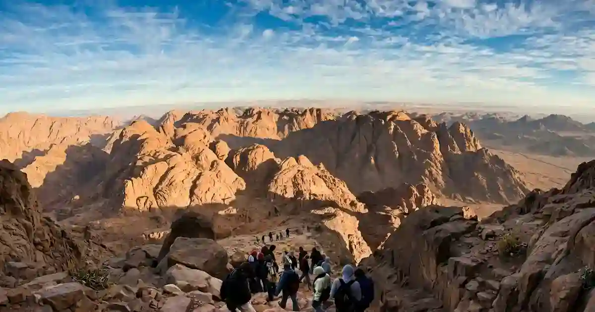 The hike up Moses Mountain, known as Mount Sinai, is moderate in difficulty and suitable for most reasonably fit travelers. The most popular route — the camel path — is a long but steady climb that takes roughly two to two and a half hours, while the shorter Stairs of Repentance is steeper and more demanding on the knees, particularly on the descent.