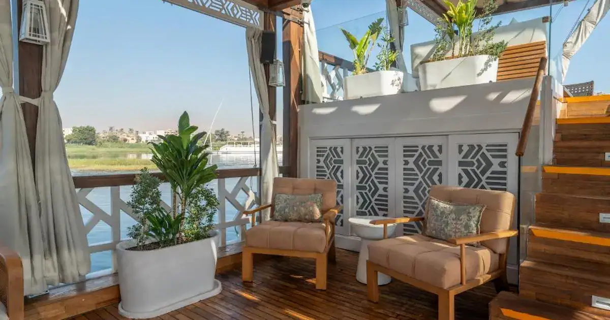 Musk Dahabiya typically accommodates 8–14 guests, offering a private and intimate sailing experience