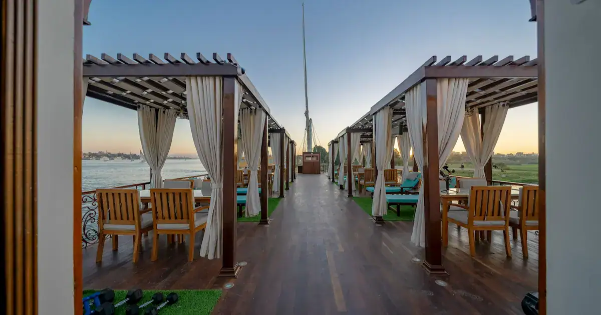Princess Farida Dahabiya features a small number of cabins designed for comfort and exclusivity, ideal for families and couples.